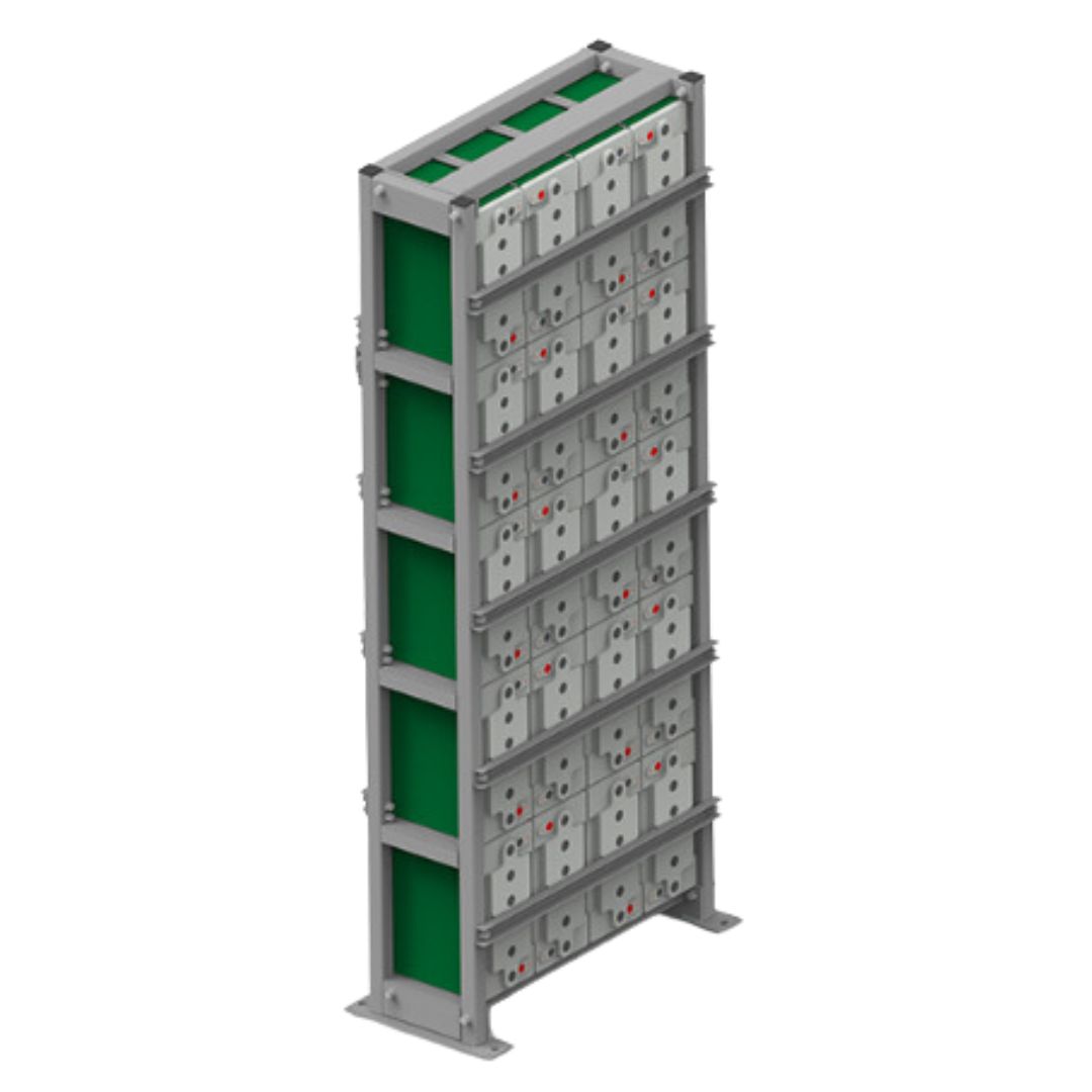 El grid | Xtreme VR de montaje vertical minimiza el abombamiento de las baterías durante todo su ciclo de vida, lo que prolonga considerablemente su vida útil. Un diseño que ahorra espacio permite una instalación y un mantenimiento sencillos. Además, el sistema está diseñado para zonas sísmicas de hasta UBC zona 4 y aceleraciones horizontales de hasta 1 g, lo que lo convierte en la opción ideal para entornos exigentes y aplicaciones en contenedores.